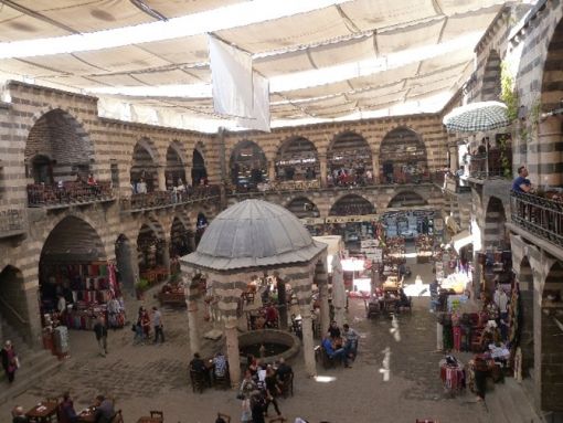 Yeni farkına varıyorum her tarafın renk cümbüşü içinde olduğunu. Tüm dükkânlardan doğanın renkleri fışkırıyor. Yöredeki kadınların çok renkli giyinme geleneği, ticaretin merkezini de renklendirmiş. Önemli kişiliklerin halılara dokunmuş portrelerini görüyorum duvarlarda; Yılmaz Güney, Selahattin Demirtaş, Che Guevara, Deniz Gezmiş… Her yer taş, yerler, sütunlar, duvarlar. Bir tek yağmura, güneşe karşı önlem gibi duran yukarıdaki bezler rahatsız ediyor beni. Han burası, tipik bir han. Üst kat var. Olasılıkla yatılan odalar bulunuyordur orada. Biraz sonra çıkınca göreceğim. Daracık taş merdivenleri sağ yanımda duruyor. İnsanlar inip çıkıyorlar birbirlerine sürtünerek. Kemerli hoş bir yapı burası. İçerisinde süs eşyasından antikaya kadar çeşitli eşyalar satan dükkânların yanı sıra kahvehaneler, kafeler ve lokantalar var. İnsan kendisini iyi hissediyor bu ortamda. Delal, hanın 450 yıllık tarihini tane tane anlatıyor bana. Neyse ki az önceki psikolojik kilitlenmeden çıktım. Kahve iyi geldi.